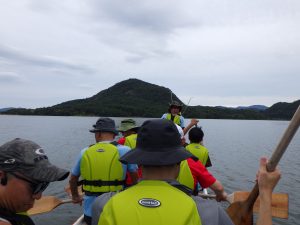 2025年秋季大会 山陰海岸ジオパークシーカヤックツアー9月13・14日 京都府久美浜へ11名の参加でした。 1日目は、久美浜湾カヌーセンターで ドラゴンボートに乗って 他にポロ艇やカナディアンカヌー、SUPにも乗りました。 レーシング艇K-1には数人が挑戦しましたが・・・皆さん久美浜湾で泳ぐことに、小学6年生のみ乗れました! 大人は乗っても即沈、漕げても10回程度で沈・・・難しい