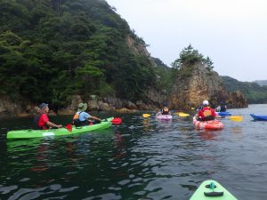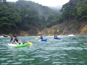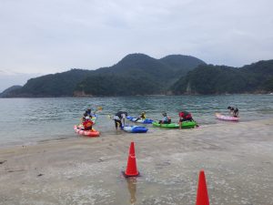 2日目は蒲井海岸でシーカヤック 浜から出発 ツリーハウスを海から見て 上陸までに岩の間を通り抜け ツリーハウス下の砂浜に上陸してツリーハウスへ ツリーハウスから砂浜をみたり ブランコに乗ったりしてから 砂浜を出発 2日目の朝は豪雨でしたが海岸ついてからは降られることなく楽しむことができました。 牡蠣小屋「風蘭の館」で昼食後、帰路につきました。 2日間楽しいひと時を過ごしました。皆さんお疲れさまでした。 ↓ GoProで撮影した動画